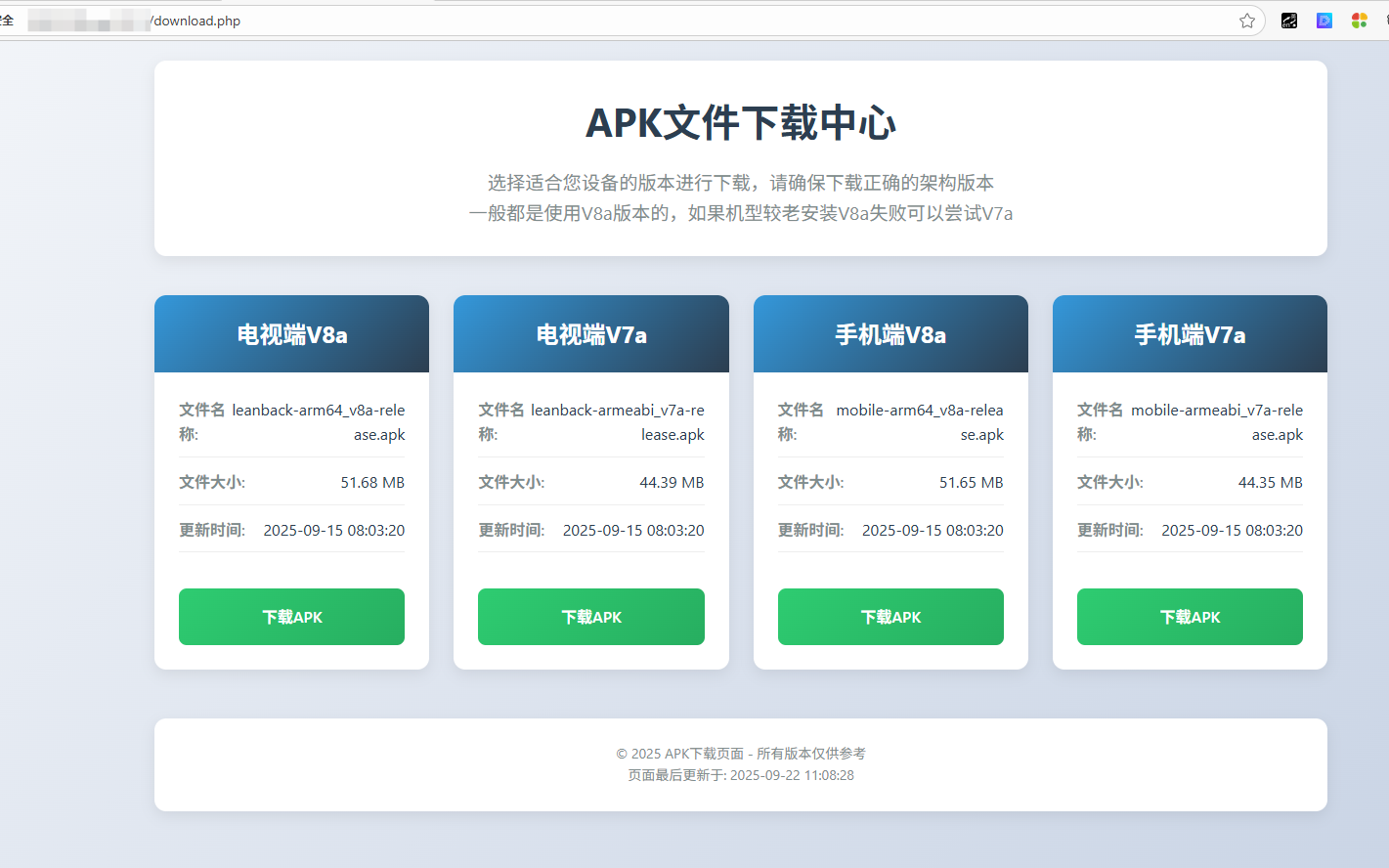 包含V8a 和 v7的安装包,tv和手机版各两个app