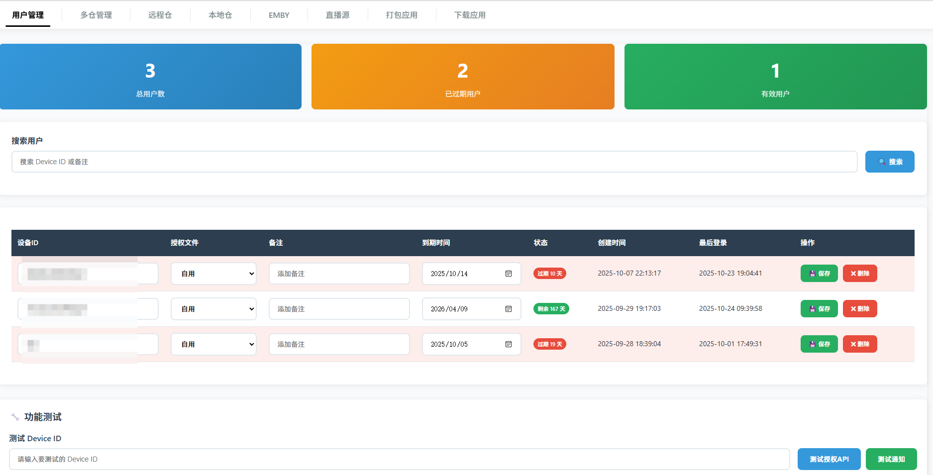 已实现 app在线打包,自动请求授权,管理端管理多仓,按日期授权,app重启切换授权,app端禁用源编辑,地址显示,一定程度上防源泄露,app内的后台地址使用base64储存