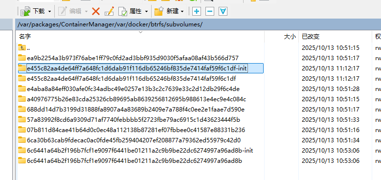 在到目录 /var/packages/ContainerManager/var/docker/btrfs/subvolumes 中查到init-id 对应的目录