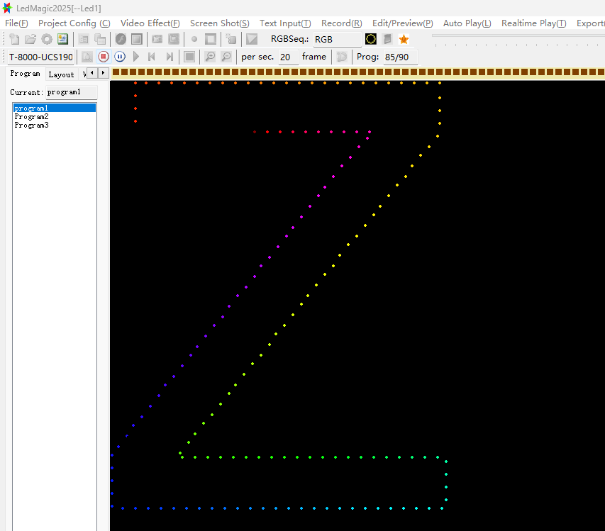 使用LEDmagic/LEDedit灯光编程软件制作门头文字边缘跑马效果