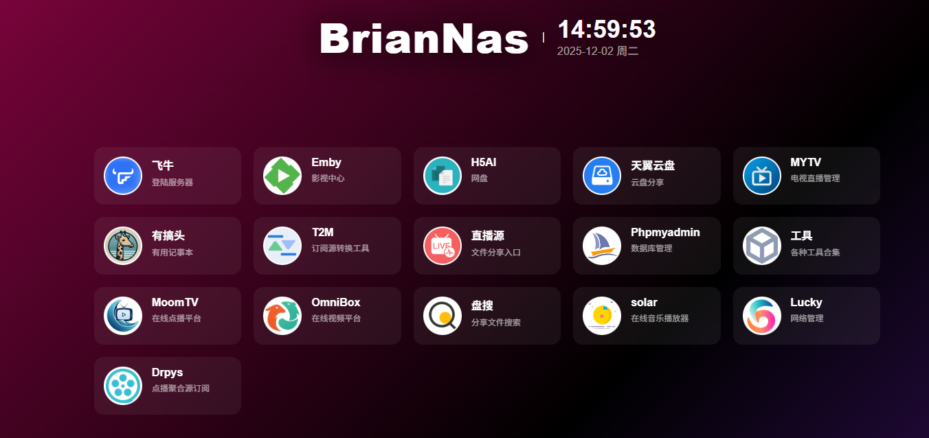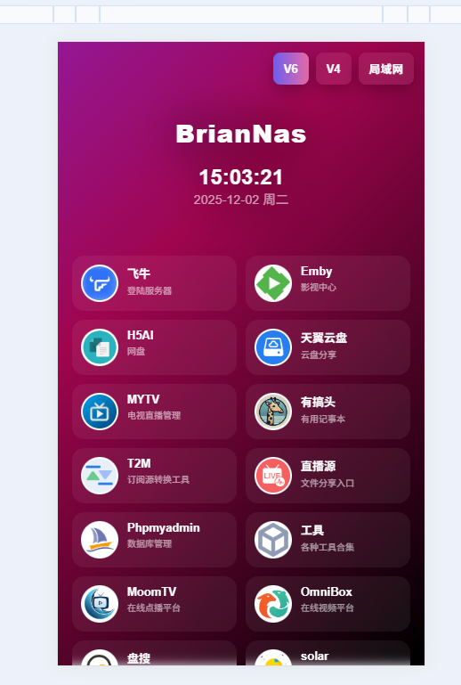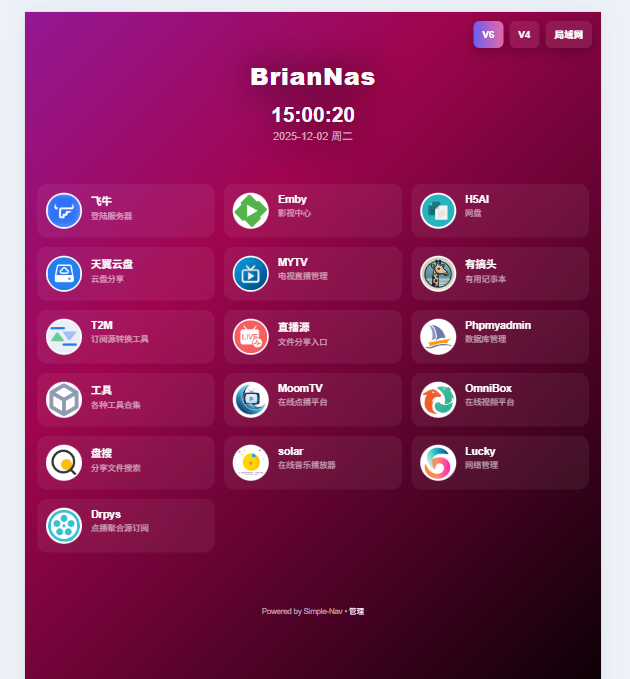 services: s-navi: image: brian9909/s-navi container_name: s-navi ports: - "8180:80" volumes: - ./data:/var/www/html/data - ./uploads:/var/www/html/uploads environment: - NAV_SERVER_NAME=服务器导航 - ADMIN_PASSWORD=password - TZ=Asia/Shanghai restart: always command: sh -c "chown -R www-data:www-data /var/www/html/data /var/www/html/uploads && /usr/bin/supervisord -c /etc/supervisord.conf"