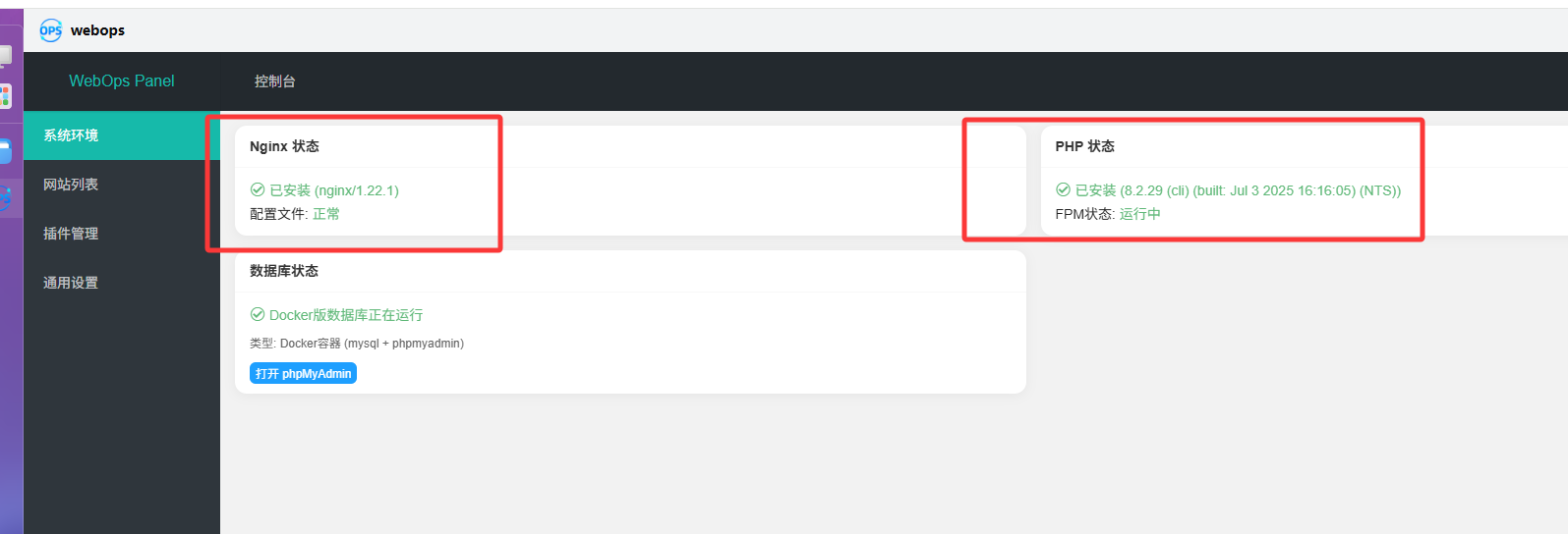在webops中先确定nginx 和 php 已安装运行,
