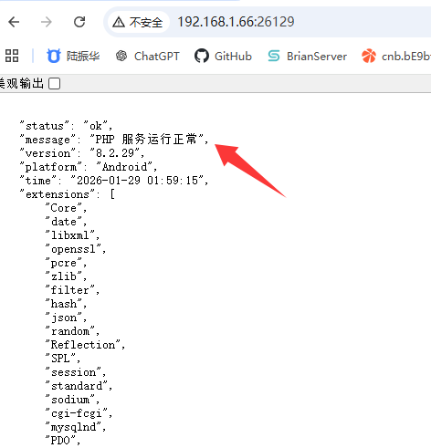访问 ip:端口,页面显示运行正常